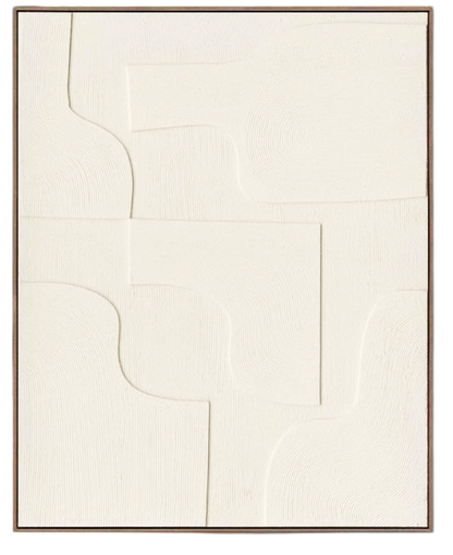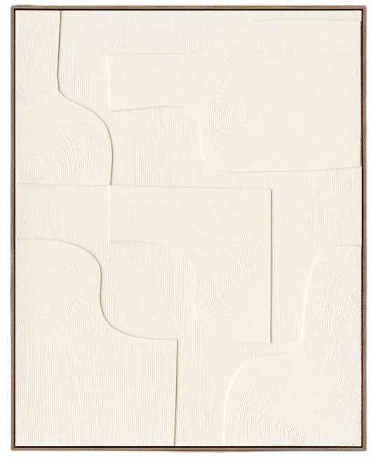 Framed in a natural composite wood frame, the artwork is beautifully grounded in warmth and simplicity, complementing the neutral tones of the painting while adding an organic, earthy element to the presentation.