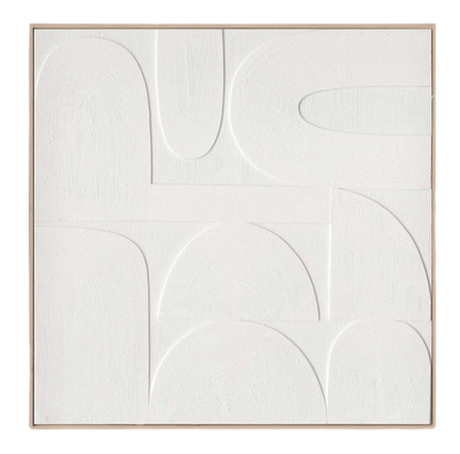 This modern abstract oil painting features layered white geometric shapes on a soft, neutral-toned canvas, creating a sense of structure and calm. The textured brushstrokes add subtle depth, while the clean, minimalist design makes it a striking yet versatile piece for any contemporary or Scandinavian-inspired space.