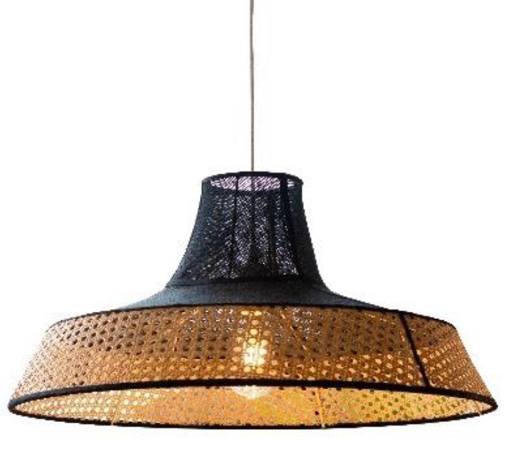 Elevate your décor with this elegant pendant that marries natural cane webbing with rich black hessian for a sophisticated contrast. The combination of textures creates visual intrigue while the natural materials bring warmth and authenticity to contemporary and eclectic interiors, making it a statement piece that truly stands out.