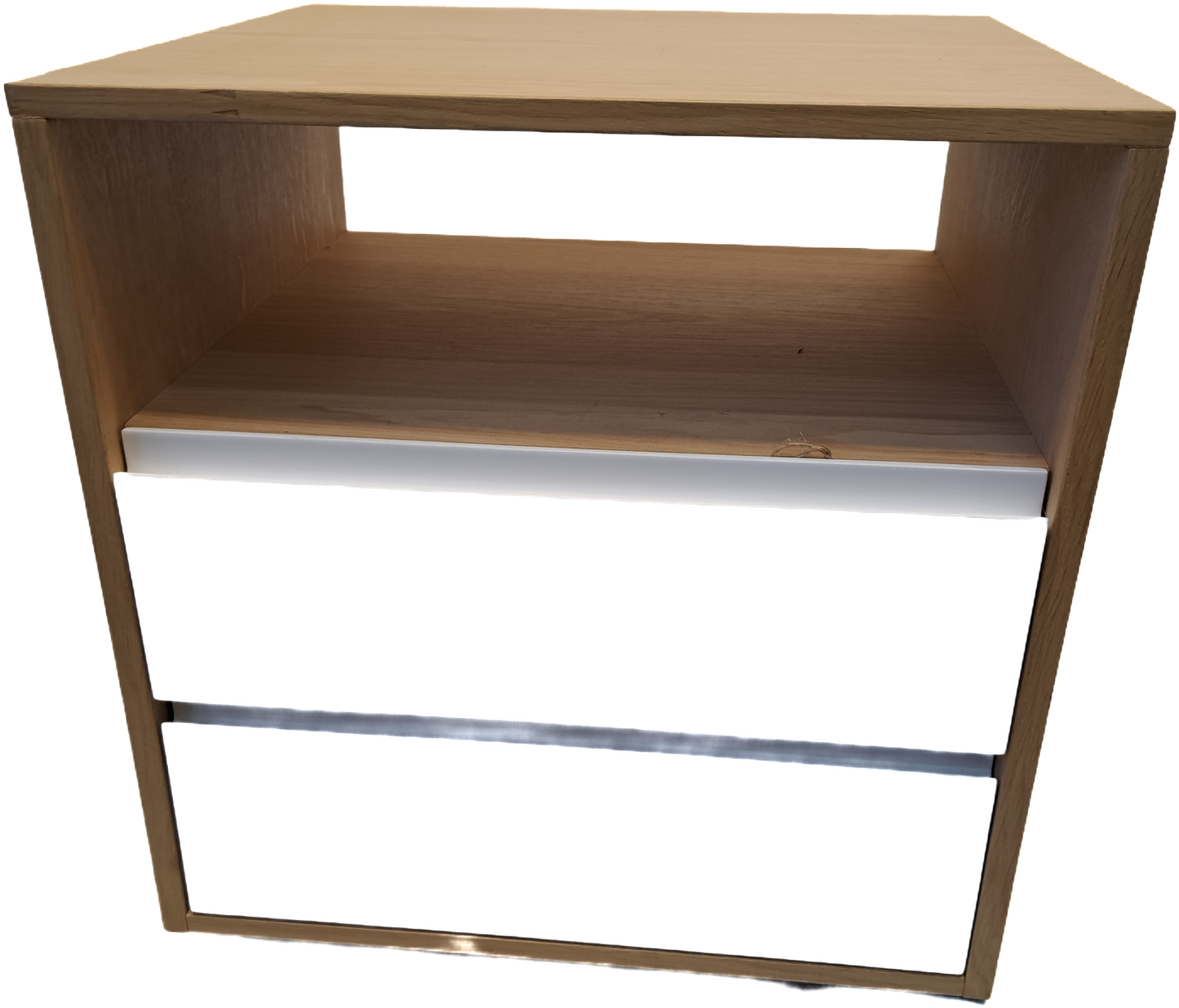 The Megan Bedside Table is a luxury nightstand with modern touches. Enjoy a beautiful oak finish and subtle Duco drawer fronts. The clever opening allows you to conveniently charge your devices. With a functional, modern design, this nightstand gives your bedroom an elegant, luxurious touch. Make the most of your bedroom with the Megan Bedside Table!