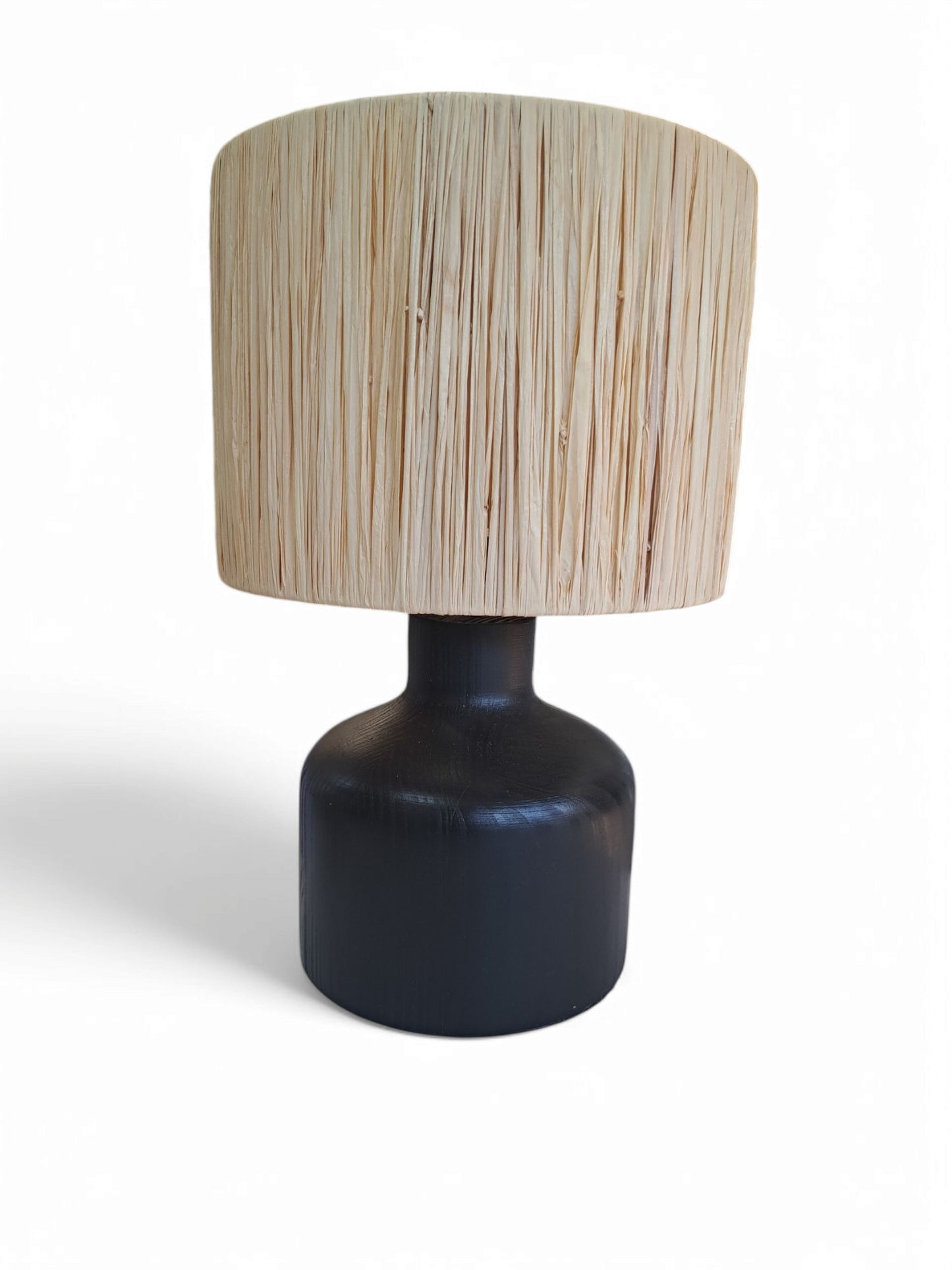 This modern table lamp features a sleek black wood design, perfect for adding a stylish touch to any small space. Its compact size makes it ideal for desks, nightstands, or tables, while providing ample light for a cozy atmosphere. Durable and easy to use with a simple on/off switch, this lamp combines form and function to elevate your home décor.