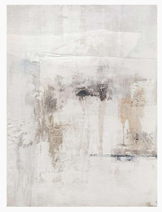 Soft, atmospheric, and richly layered, this abstract oil painting evokes a quiet, dreamlike landscape through delicate textures and muted earth tones. Washes of white, stone, beige, and soft grey blend organically, creating a serene visual experience that shifts with the light and perspective.