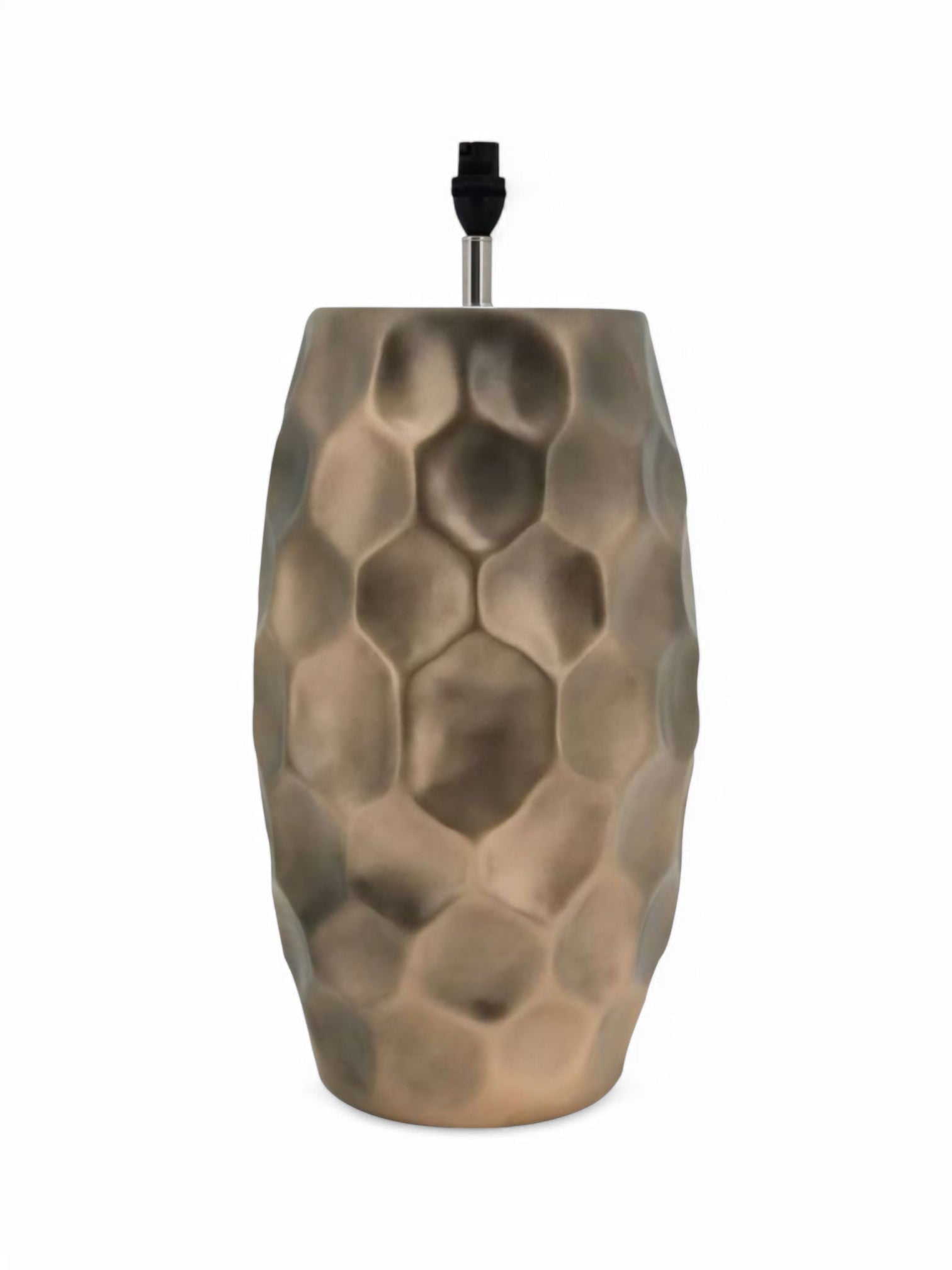 Illuminate your space with the stunning Hammered Urn table lamp base. Its sleek hammered design adds a touch of elegance, while providing a sturdy base for any lampshade. Create a warm and inviting ambiance in any room with this beautiful and functional piece.