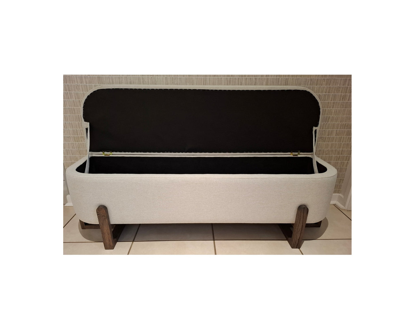 Ideal for the end of a bed, in a hallway, or as a coffee table alternative in the living room, it lifts open easily to store blankets, cushions, toys, or everyday essentials. Each ottoman is made by skilled artisans using quality materials, with your choice of fabric and finish to suit your home.