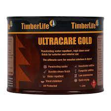 Penetrating water repellent, high shenn wood finish for exterior and interior use. UltraCare Gold is a penetrating water repellent sealer that has been specially formulated to protect outdoor timbers against the harsh South African climatic conditions. It contains an unique blend of high quality drying oils, resins and water repellent wax components as well as high performance UV absorbers and light stabilizers. These ingredients are dissolved in a formulated solvent carrier to deeply penetrate, nourish and stabilize the wood and ensure exceptional protection against water uptake and UV degradation caused by sunlight exposure. It dries to a clear sheen finish that enhances the natural colour and beauty of the wood. UltraCare Gold also contains insecticidal and fungicidal additives that provide added protection against wood borer and termite attack as well as mould growth and fungal discolouration, respectively. UltraCare Gold can also be used as a clear finish on “Stain” penetrating wood colouring stains or can be tinted to various shades of brown: Mahogany, Oregon, Teak, Oak, Dark Oak, Golden Brown and Walnut. (Only use Timberlife “SolvTints” that contain high quality, colour fast UV resistant transparent iron oxide pigments). Ideal for use on wooden window and door frames, doors, balustrades, etc. where a high sheen finish is preferred. Not recommended for use on high traffic areas such as wooden decks and floors.